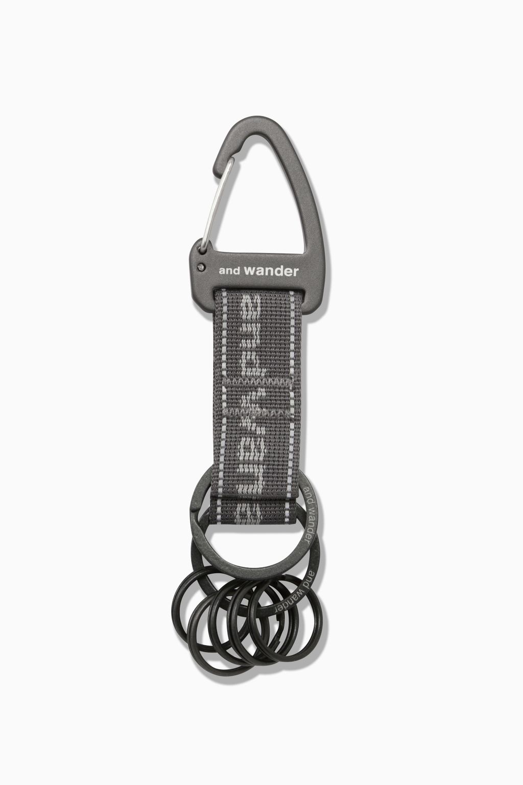 以大、小雙環組合而成的鑰匙扣,方便分類整理鑰匙。搭配鋁製登山扣掛鉤,可輕鬆吊掛於背包或腰帶,兼具實用性與戶外風格。