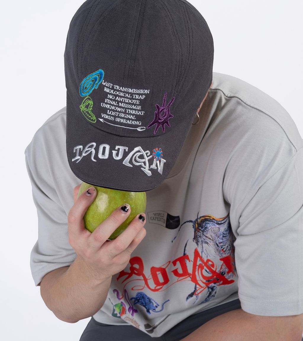 Trojan 夏季膠囊系列由 nozzle quiz® 與實驗影像單位 San 共同構築,結合 AI 與手繪語彙,在末日世界觀中描繪出人類自設陷阱的故事。這頂帽子,是一個預警標誌,也是一則未來寓言。