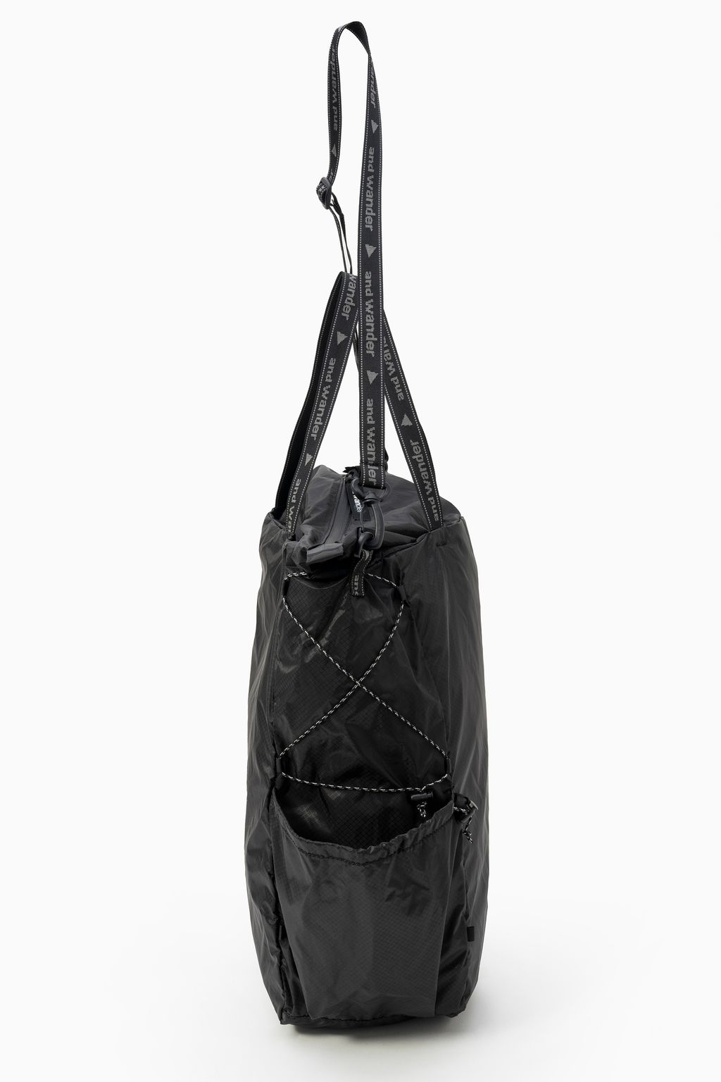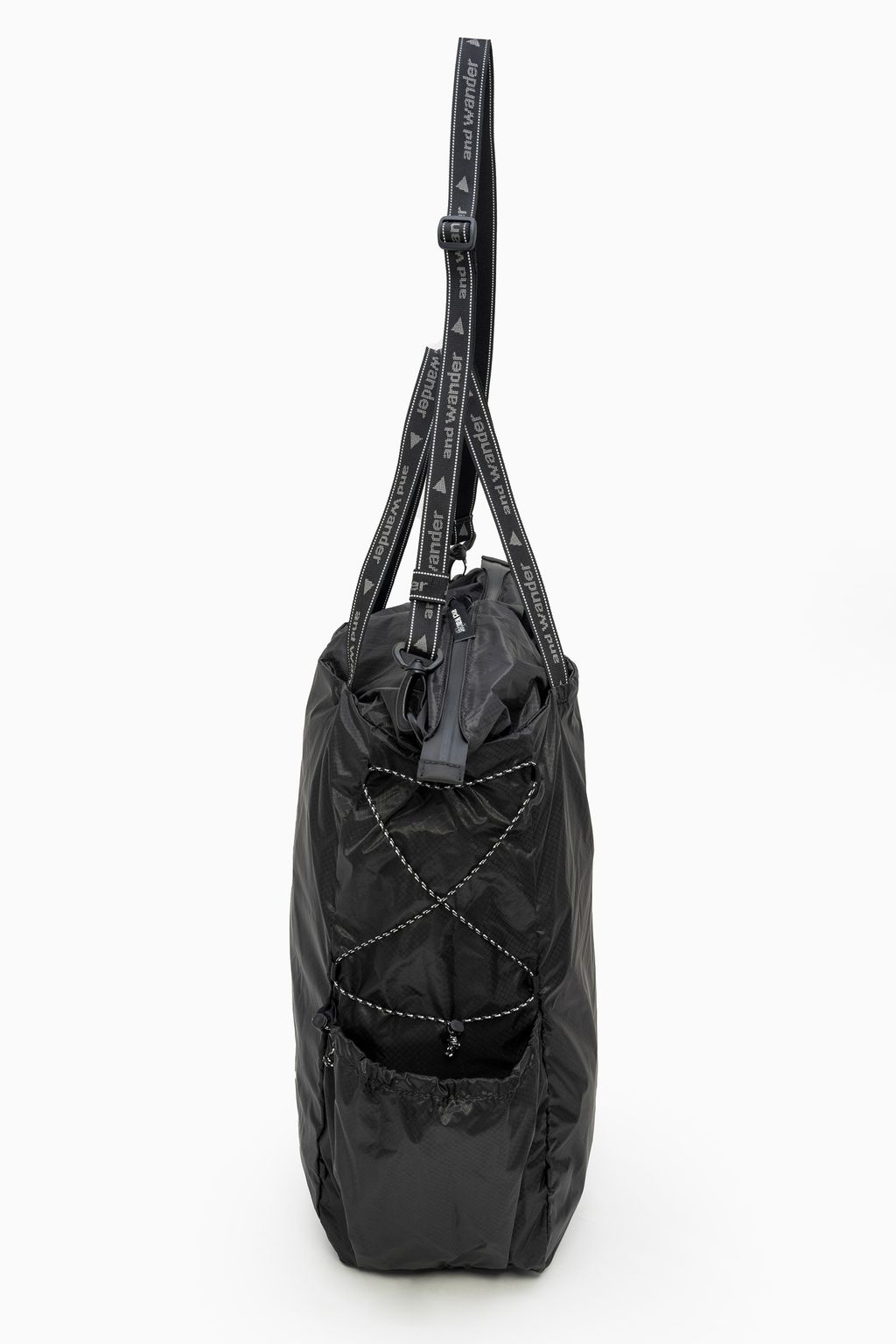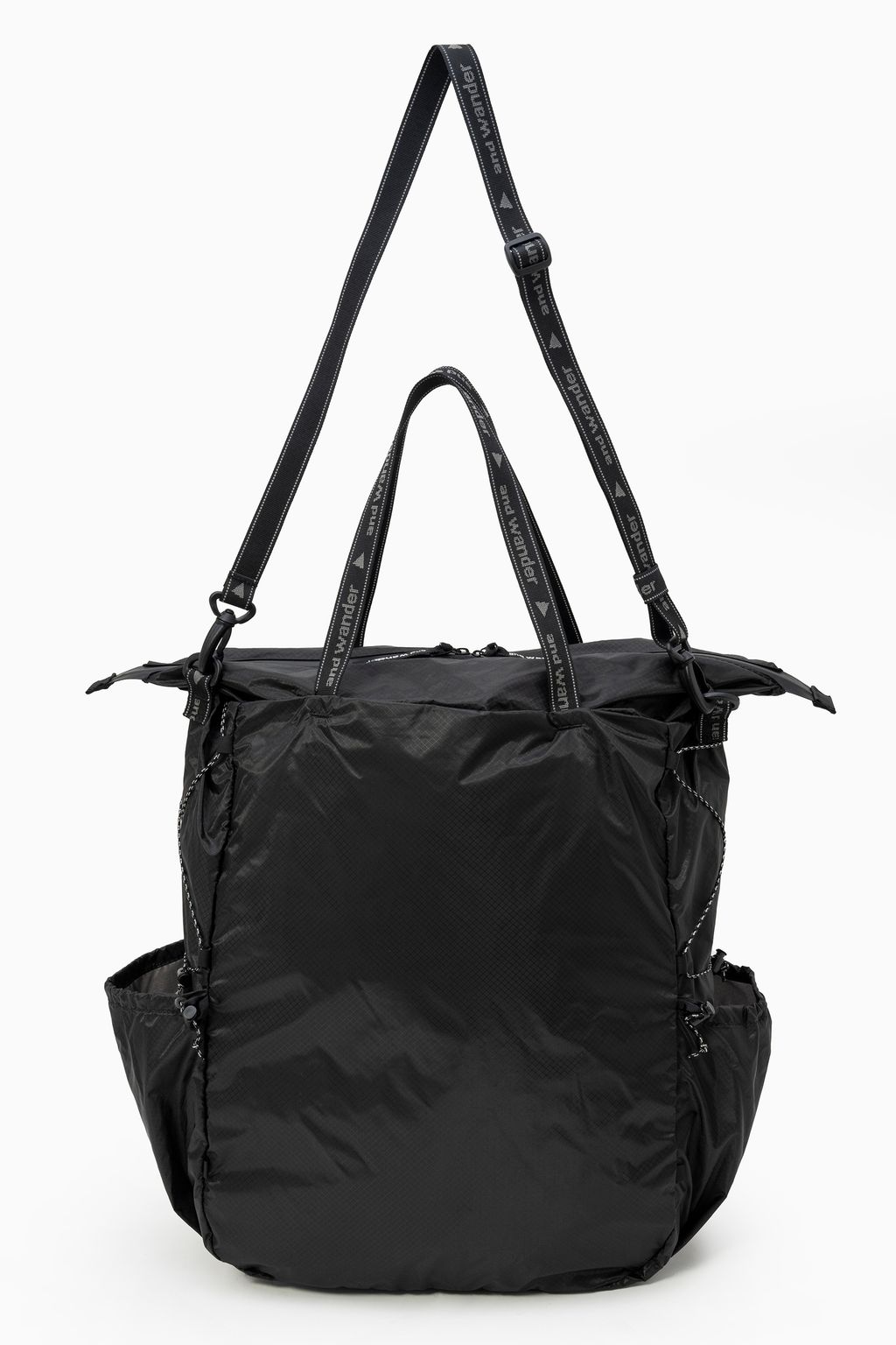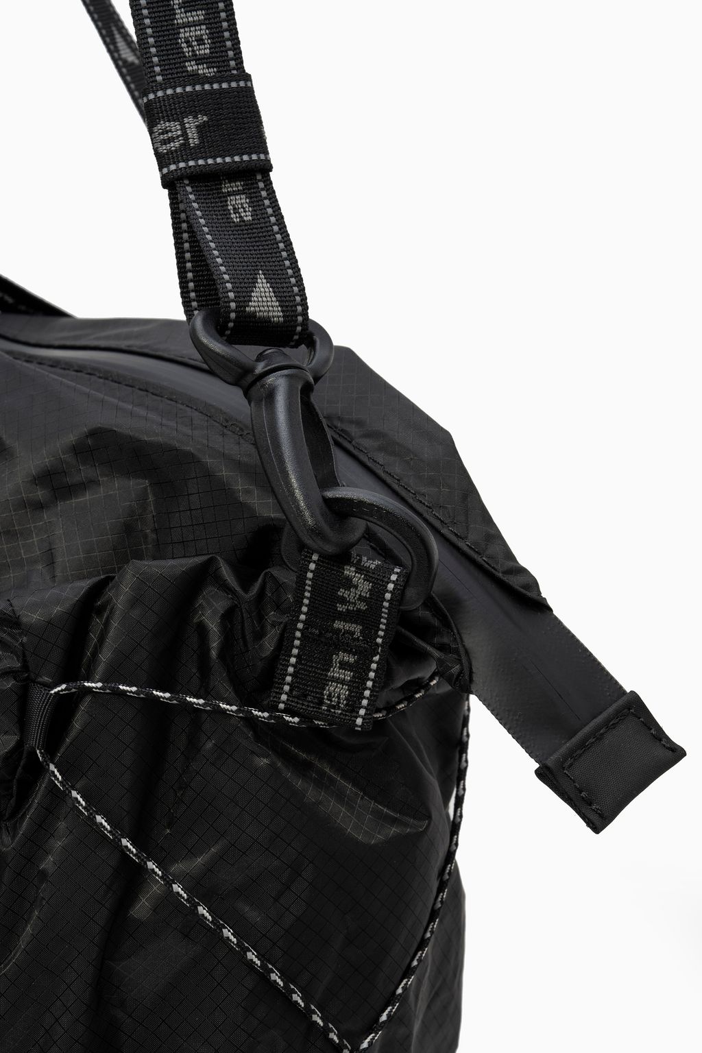 採用 INVISTA 30D CORDURA 尼龍布料,具備耐磨、抗撕裂與抗刮性能。表面經矽膠塗層處理,提供優異的防潑水性與 1000mm 以上耐水度。此款托特包具備輕量可收納設計,可摺疊至內袋中,便於攜帶。附有長提把與可調節肩背帶,提供手提與肩背兩種使用方式,實測容量達 25L,適合旅行與日常使用。