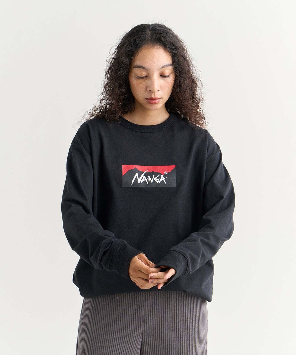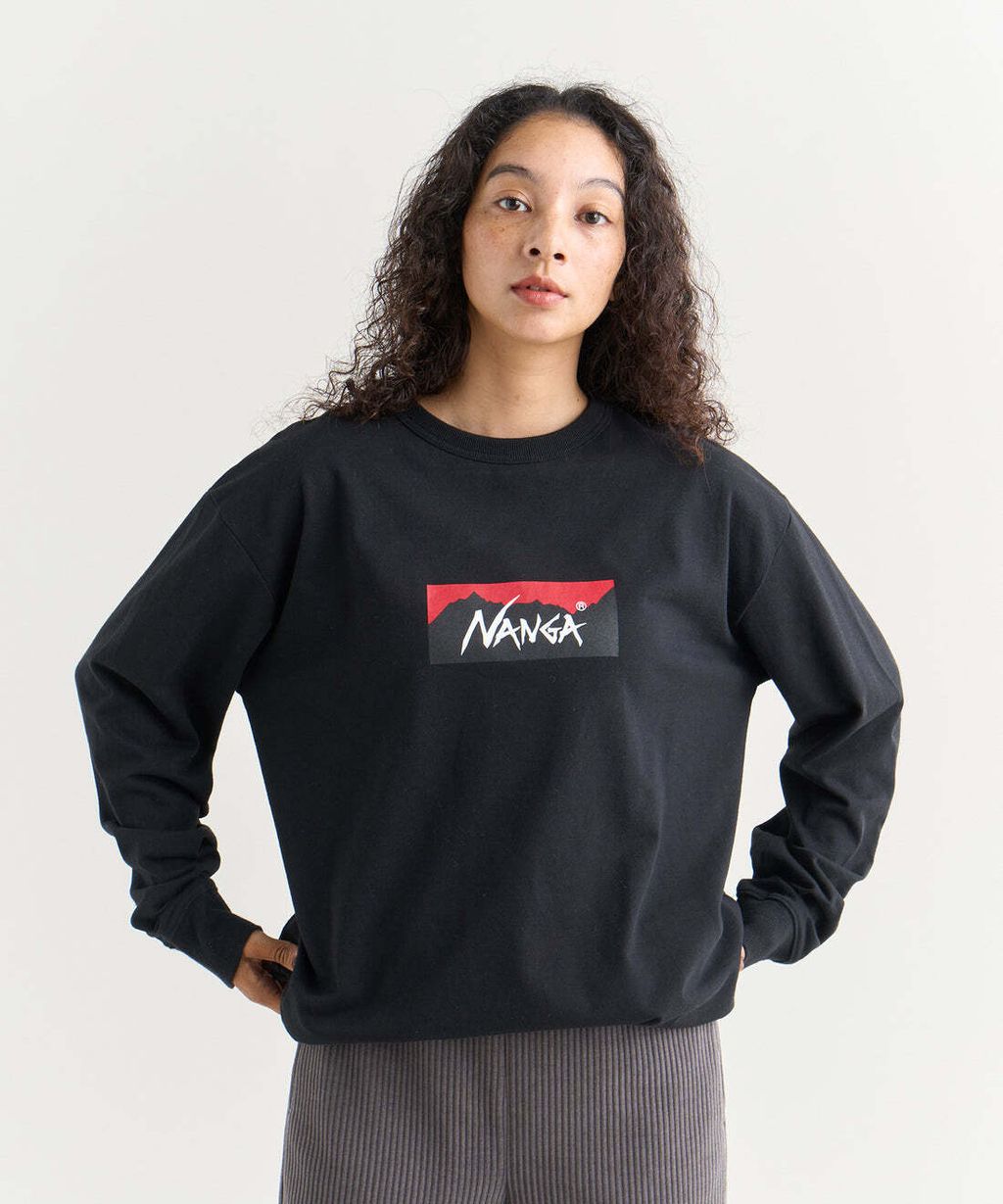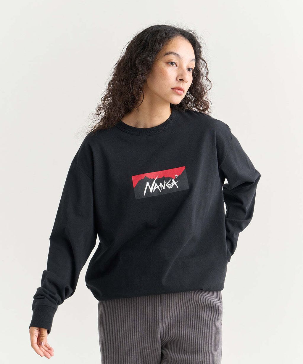NANGA ECO HYBRID BOX LOGO L/S TEE_BLACK