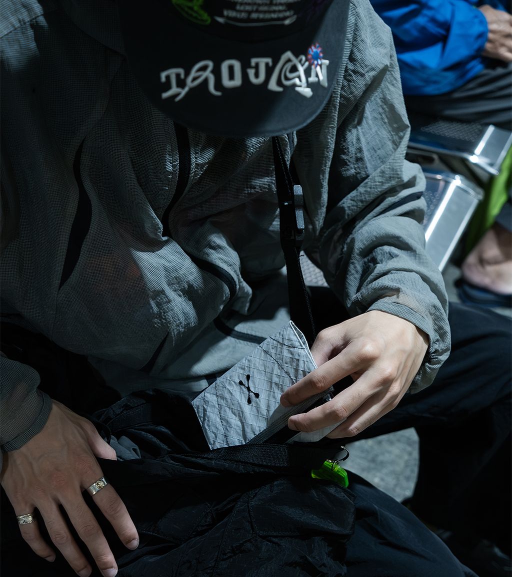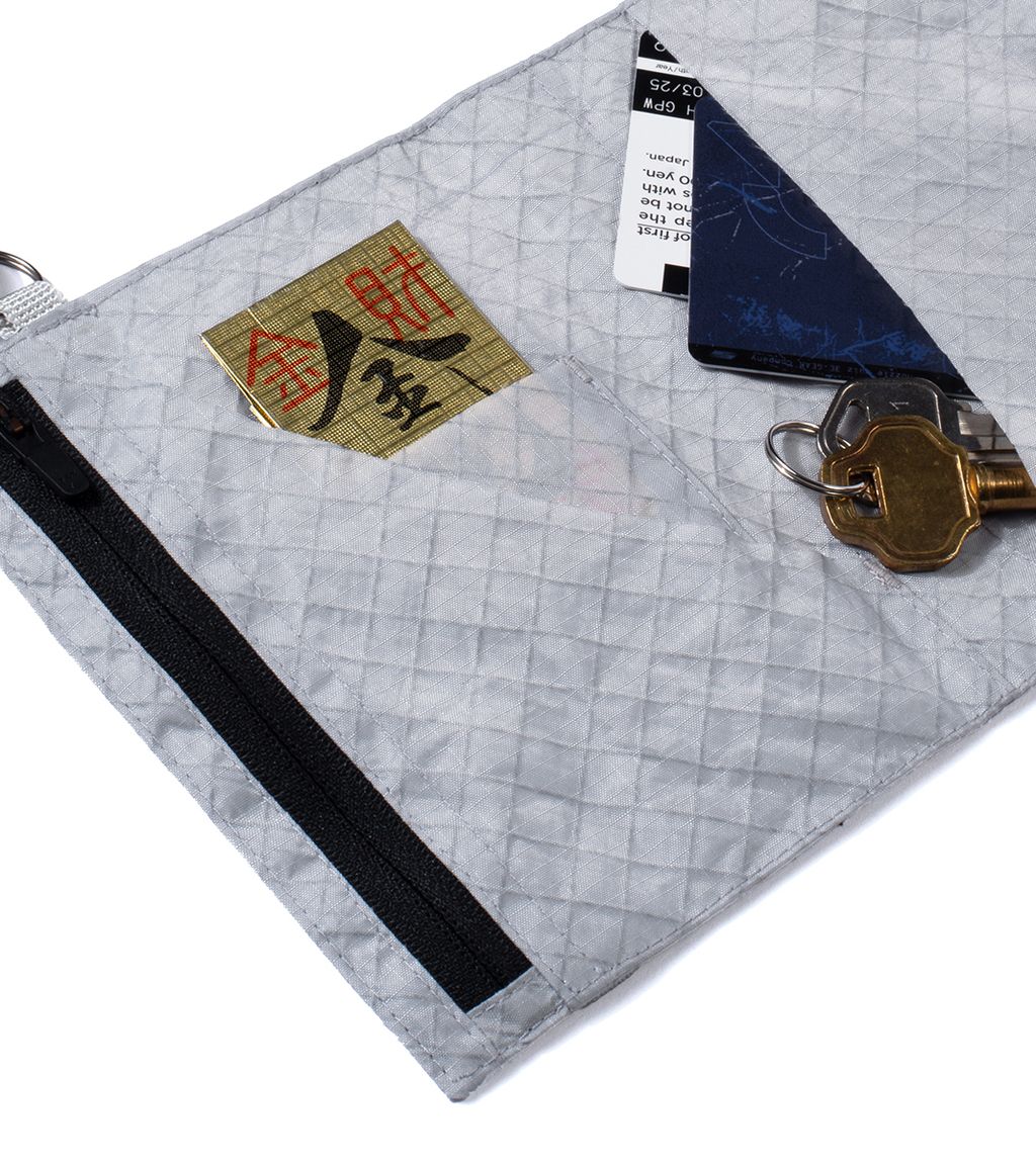 主體使用 Ultra™ TX70 三層防水布料,輕量、耐磨,防潑水性能優異;展開為單面平整結構,內含雙卡層與票證夾層,外部配置隱藏式 YKK 拉鍊暗袋,提升整體安全性與機能效率。