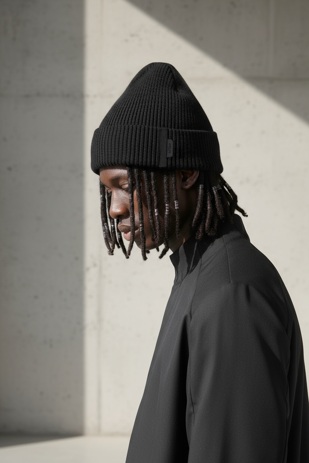採用經典羊毛反摺結構打造冬季定番毛帽,全帽以直向羅紋針織呈現立體線條,使輪廓俐落且易於搭配。寬簷反摺提升整體密度,讓帽簷更貼合頭型、配戴更為穩定。左側以織帶結合 oqLiq Logo TPU 標點綴細節,黑色與炭灰混紗色調帶有霧面毛羽質感,溫暖柔和,展現本季沉穩低調的季節氛圍。