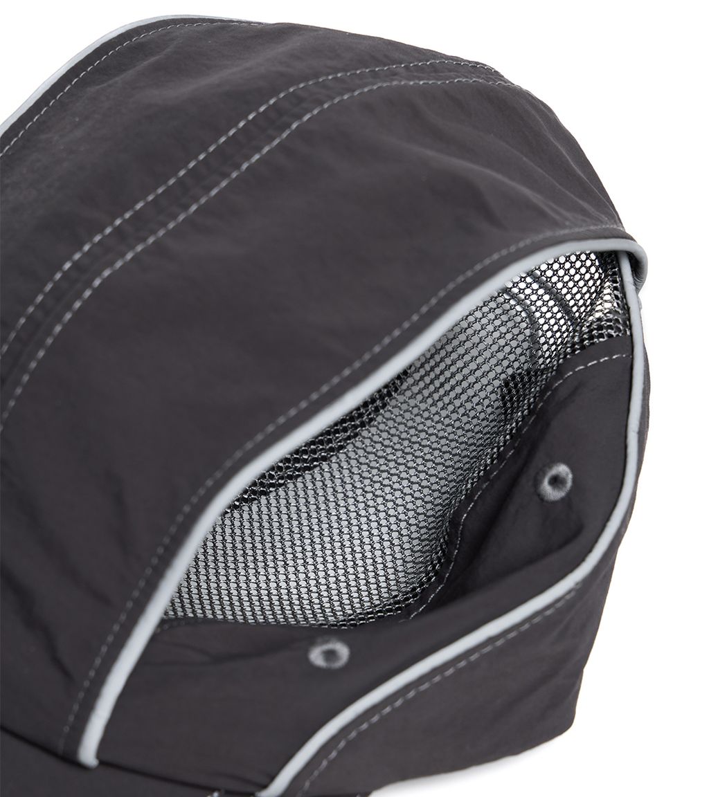 將經典六片帽型重新升級,揉合都會風格與戶外機能,以「探索與適應」為設計核心,打造全年皆宜的多場景帽款。採用 防潑水皺感尼龍面料,具備輕量、透氣與耐用特性,帽身與帽簷反光壓線設計提升夜間能見度,細節極具辨識度。