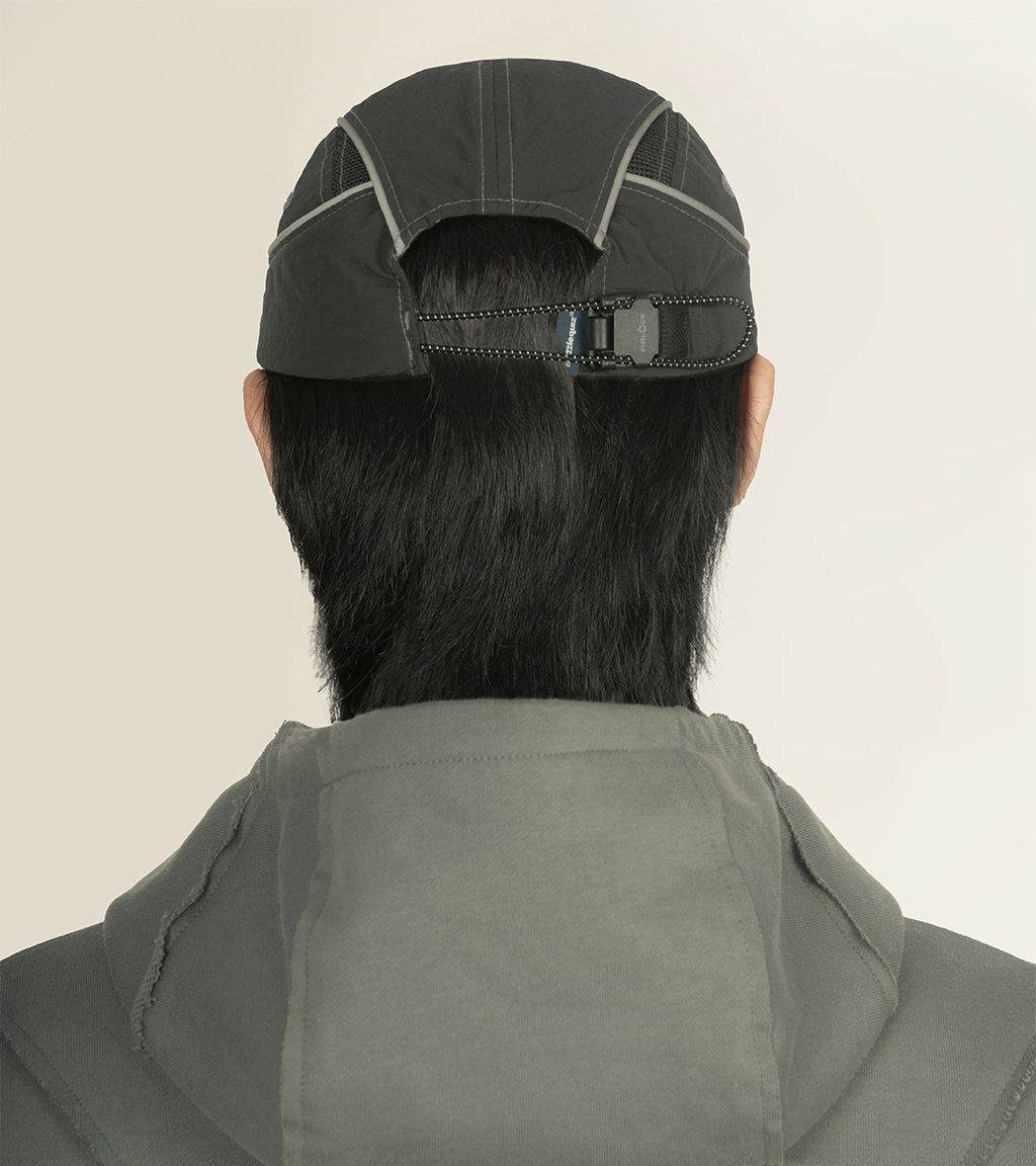 後側搭載 Fidlock® 磁吸扣件結合反光調節繩,可單手快速調整鬆緊,展現 nozzle quiz 對微氣候機能與日常穿戴體驗的極致追求。