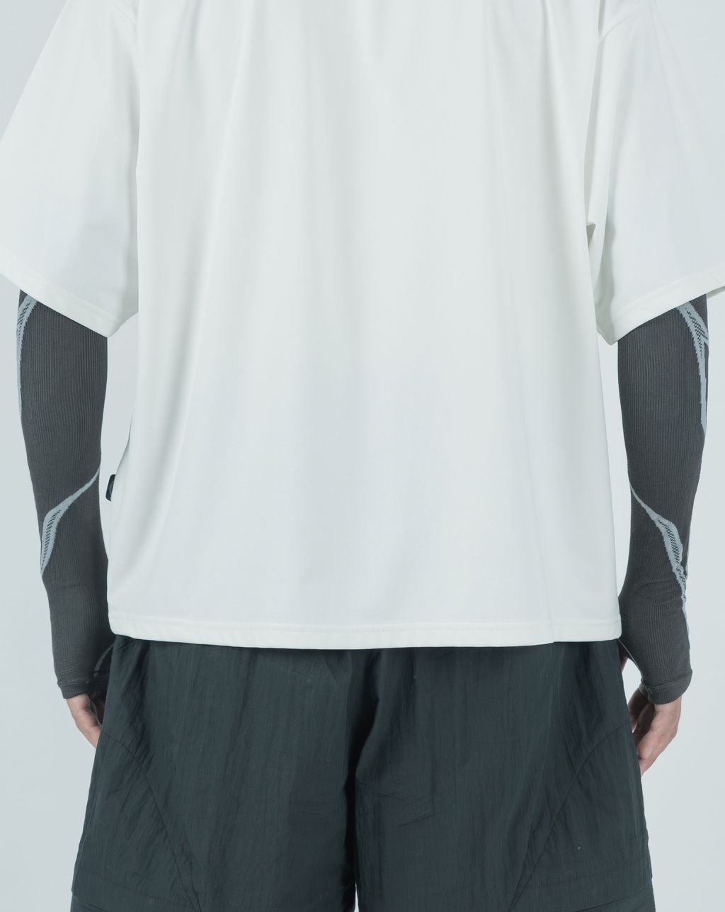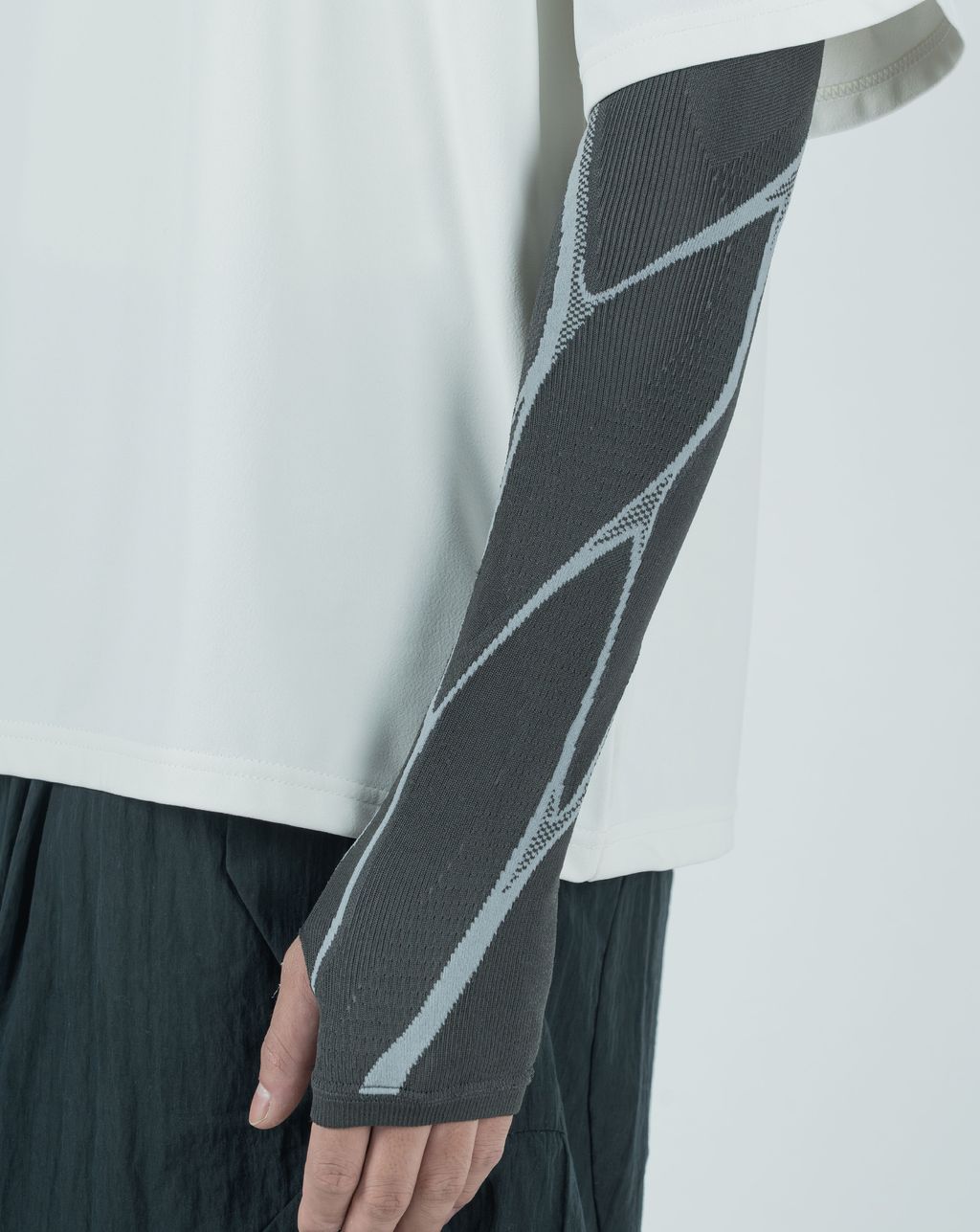 作為探索者對抗強烈紫外線與多變氣溫的第一道防線,Tactel® Contour Sleeves 提升機動性並以「地形跨越」概念呈現動態視覺,象徵在不同海拔間游移的生命力。 採用 Tactel® 超細纖維,比一般尼龍更輕盈細膩且快乾,搭配 UPF 50+ 防曬與 Lycra® 彈性,確保高強度活動下穩固服貼。 關節易積熱處設置透氣網口,引導氣流維持乾爽舒適。 拇指岔孔設計增手掌防護並穩定袖身位置。線條修飾手臂輪廓,內斂展現科技美學與山徑觀察專業語彙,使使用者在烈日下感受如霧般輕盈與自由。