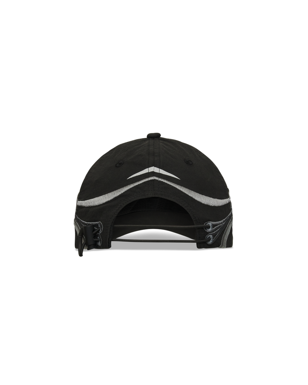 Pursuit 6 Panel Cap 以黑色呈現,是一款兼具輕量性與機能性的帽款設計。採用尼龍與棉混紡的挺度布料製成,提供清爽俐落的外觀與穩定帽型。六片式結構搭配立體成型帽簷,特別考量與太陽眼鏡的配戴相容性。帽身融入反光細節與刺繡圖像,提升可視性與辨識度。後方配置可調式抽繩設計,確保配戴時的穩定與舒適,帽簷上繡有 ROA 標誌,細節低調而完整。