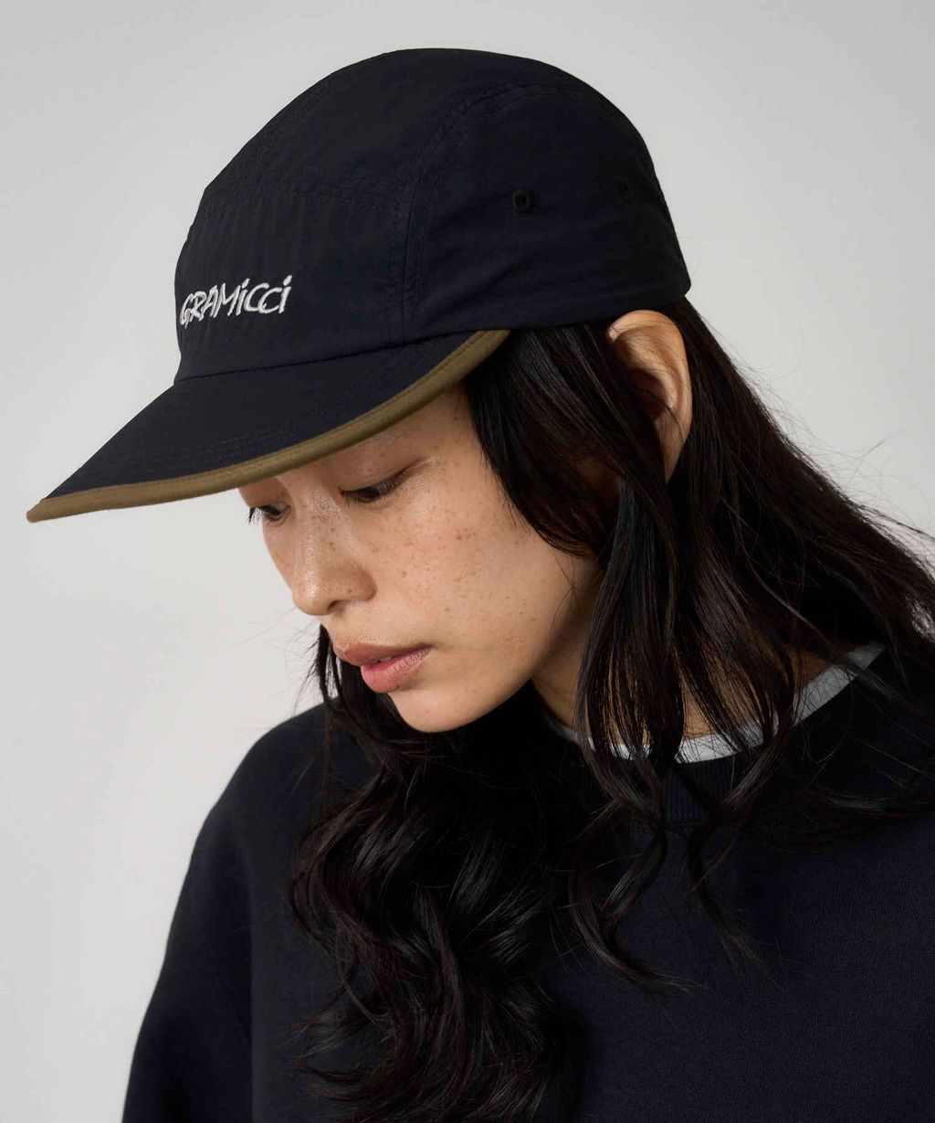 Gramicci 尼龍帽不是一般的五片式帽子。雖然它有五片帽身和帽簷,可以戴在頭上,但因採用快乾再生尼龍製作,非常適合靠近水邊的活動——無論是悠閒划獨木舟,還是攀爬峽谷,都很合適。