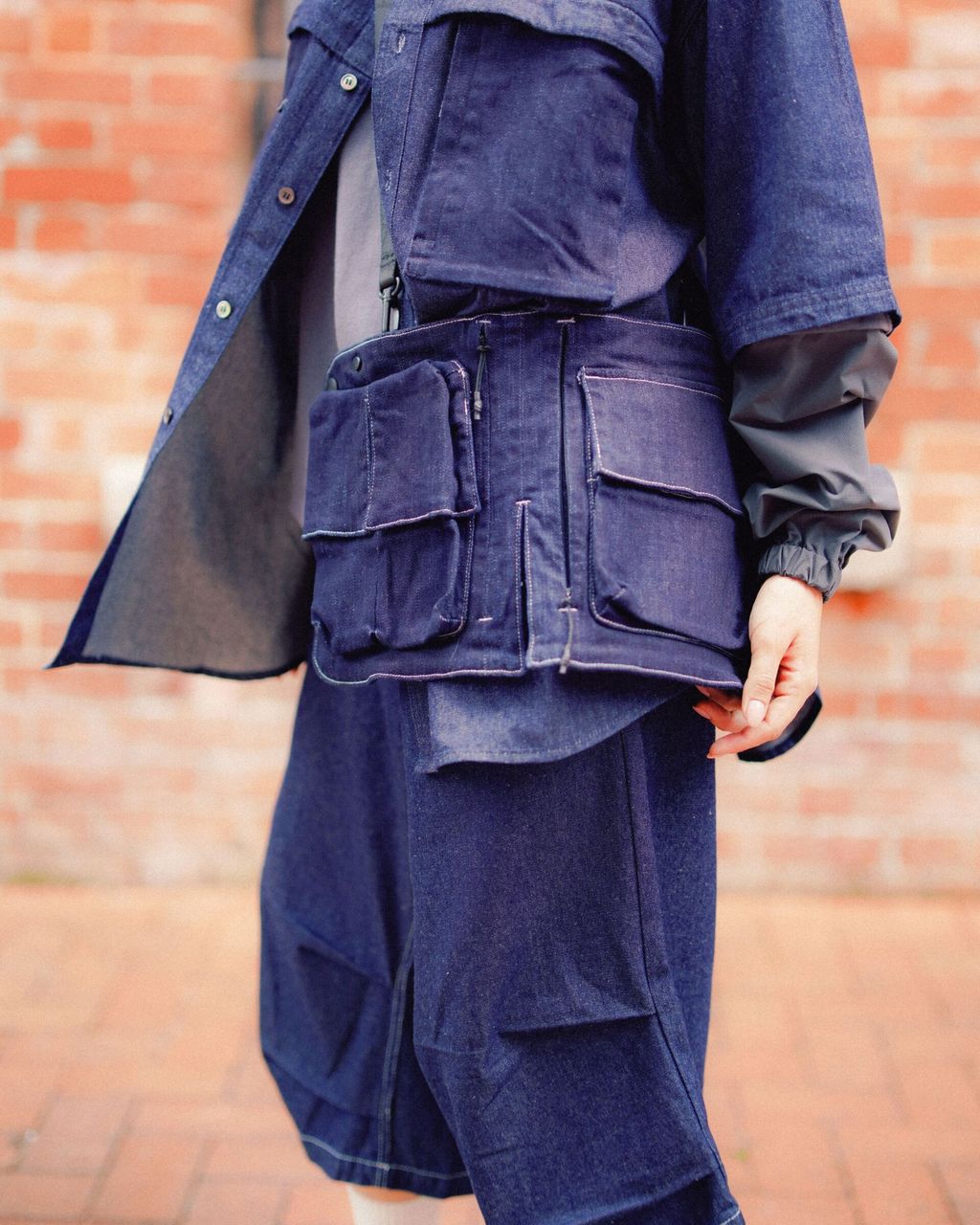 採用 100% 純棉材質製成,透氣、輕盈且極具耐用性,提供全天舒適穿著體驗。特殊的 喇叭剪裁設計 形塑鮮明輪廓,無論日常或特殊場合都能輕鬆駕馭。最大亮點為 創新的可拆式口袋,可拆下作為獨立收納包使用,實用性與造型兼具,展現獨到穿搭美學。