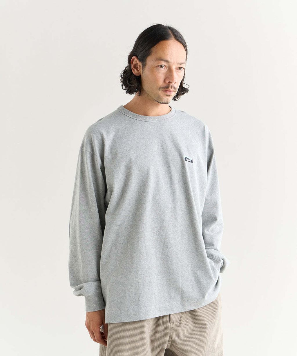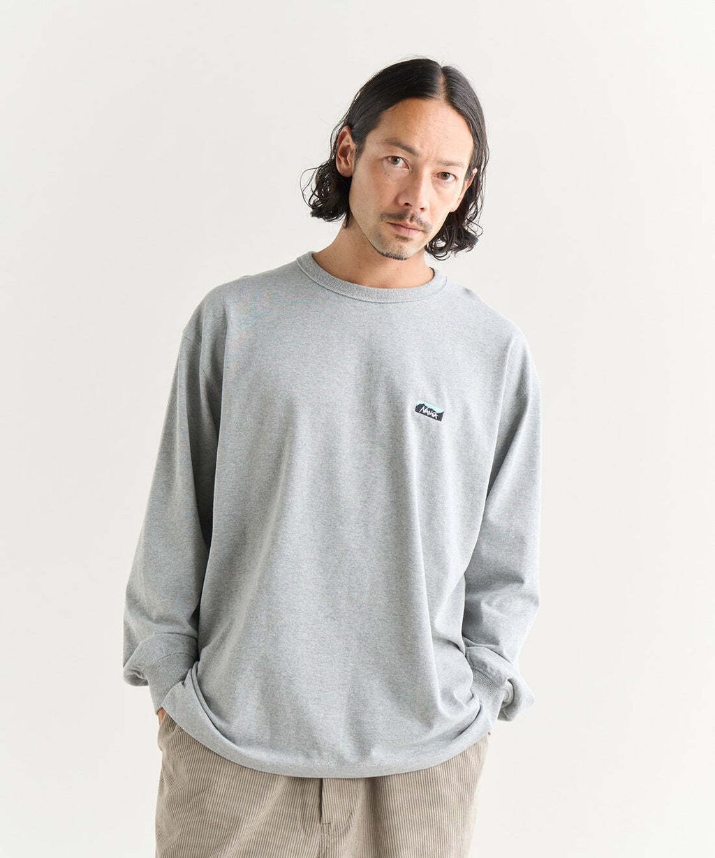 NANGA ECO HYBRID BOX LOGO EMBROIDERY L/S TEE_L.GRAY