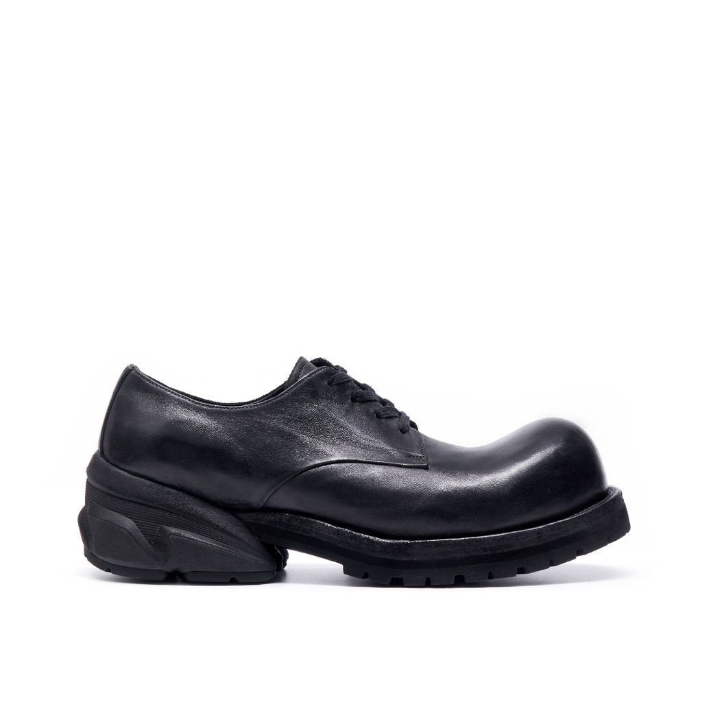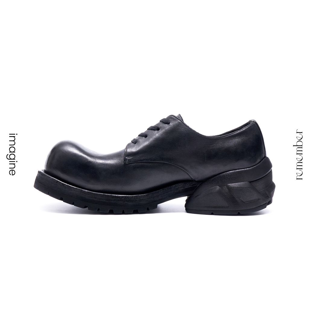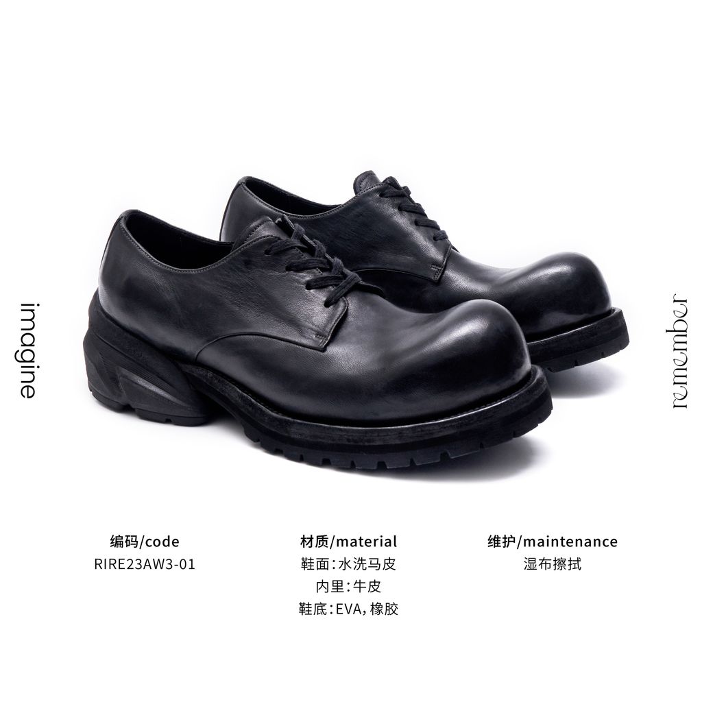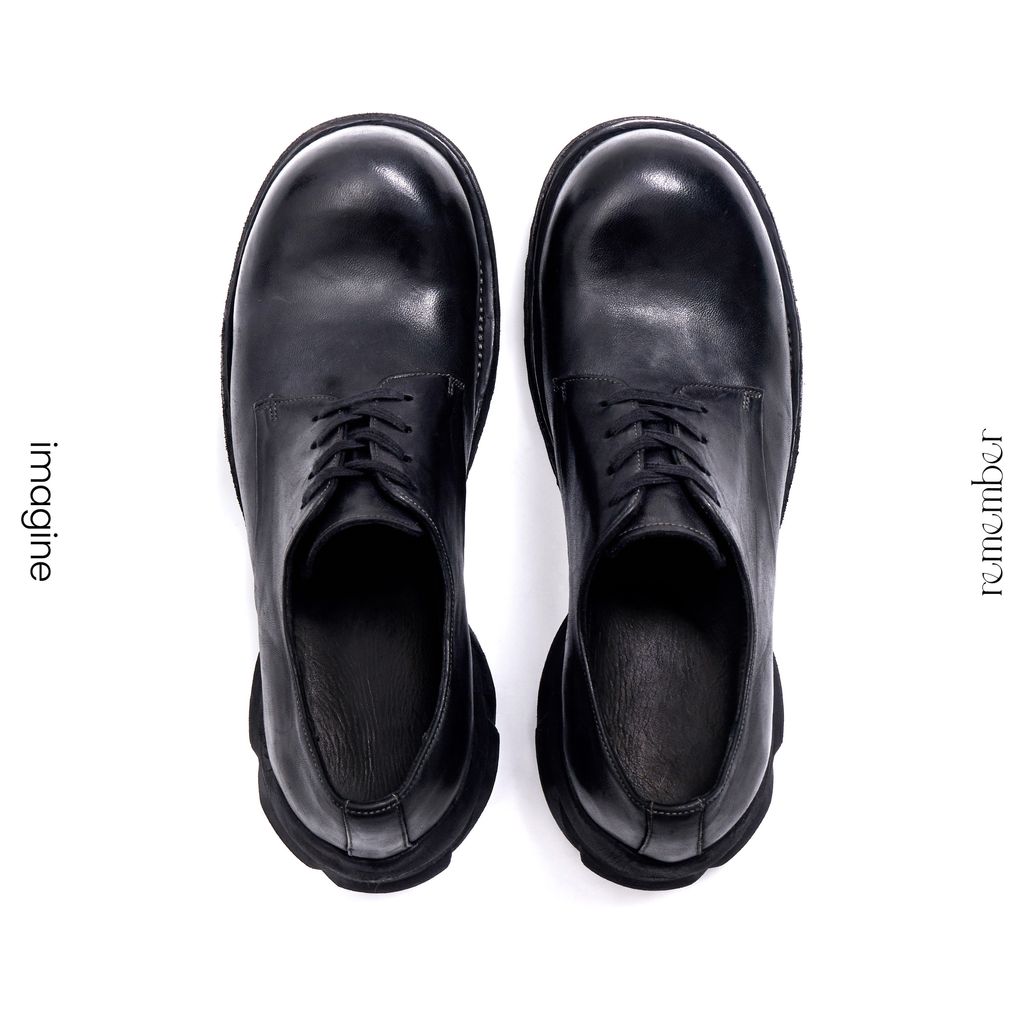 設計:德比鞋款輪廓,搭配洗舊工藝與品牌標誌性外底結構