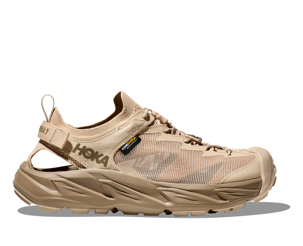 Hopara 2 被描述為「感覺像涼鞋,功能像健行鞋」,全鞋設計上以透氣網眼打造鞋面,兼具排水又能防止道路碎石進入。搭配延伸至鞋舌位置的可調式鞋跟綁帶作支撐,展現具有未來氣息的層次感。