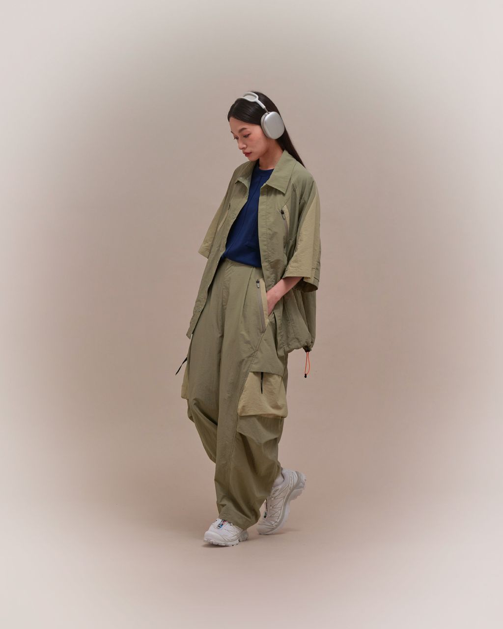 * 大腿兩側剪接拉鍊口袋收納